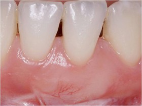 Tegenwoordig zien tandartsen steeds meer patiënten die teruggetrokken tandvlees hebben bij de voortanden. Deze tandvleesdefecten komen vaak door een harde poetstechniek met name bij de tanden die te ver naar voren staan. Indien de patiënt geen klachten heeft en het tandvlees stabiel is, hoeft er geen behandeling plaats te vinden. De blootliggende wortel moet wel goed worden schoongehouden. Vaak hebben patiënten wel klachten zoals gevoeligheid, het lastig kunnen schoonhouden van het gebied, te veel bloeding en tandsteen. Bij een instabiele situatie trekt het tandvlees steeds verder terug. Patiënten vinden dit vaak esthetisch storend; lelijk. Door middel van een chirurgische behandeling in onze kliniek kan de tand met het plaatselijk teruggetrokken tandvlees bedekt worden. Hiervoor wordt een tandvleestransplantaat uit het gehemelte genomen. Dit gebeurt onder plaatselijke verdoving en duurt ongeveer een uur. Post-operatieve controles vinden plaatst na 2, 8 en 12 weken. De behandeling geeft vaak een mooi resultaat met een stabiele en goede esthetische verbetering. Het is zeer belangrijk dat voor en na de chirurgie de situatie in de mond gezond is zodat het tandvleestransplantaat niet gaat ontsteken en verloren gaat.
